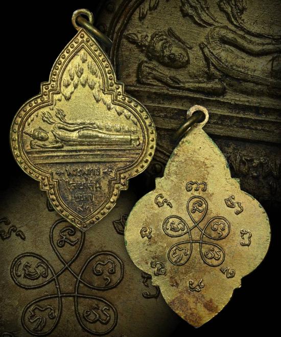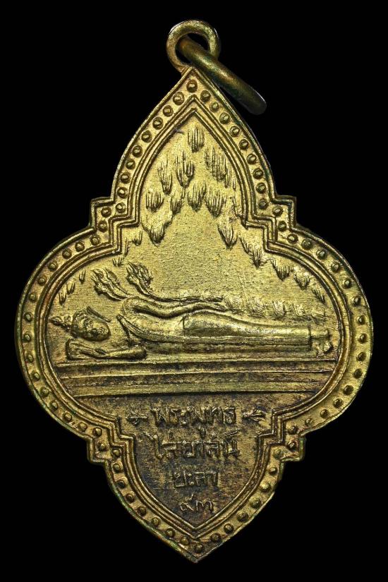 เหรียญพระพุทธไสยาสน์ยะลา เนื้อทองแดงกะไหล่ทอง ปี2493 จ.ยะลา