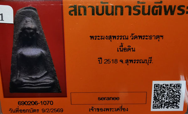 พระผงสุพรรณ วัดพระธาตุฯ เนื้อดิน ปี2518 จ.สุพรรณบุรี + กล่องเดิม + บัตรG-pra สภาพสวยเดิมค่ะ
