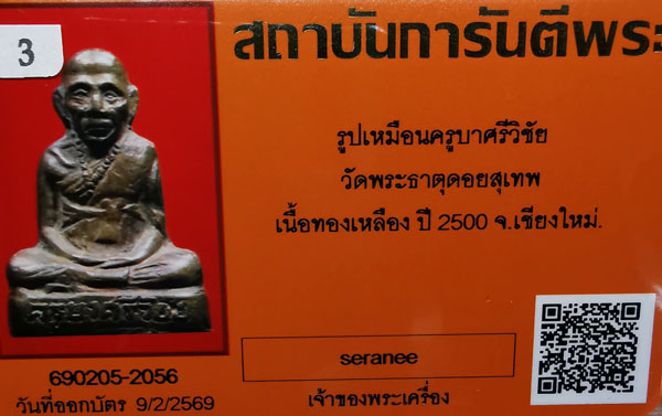 รูปเหมือนครูบาศรีวิชัย วัดพระธาตุดอยสุเทพ เนื้อทองเหลือง ปี2500 จ.เชียงใหม่ + บัตร G-pra สภาพเดิมค่ะ