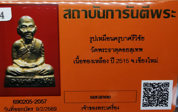 รูปเหมือนครูบาศรีวิชัย วัดพระธาตุดอยสุเทพ พิมพ์หน้าใหญ่ เนื้อทองเหลือง ปี2515 จ.เชียงใหม่ + บัตรG-pra สภาพสวยเดิมค่ะ