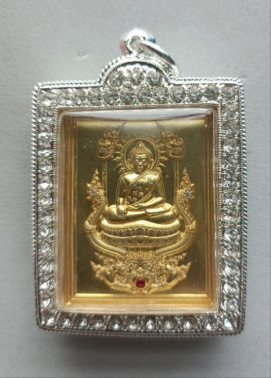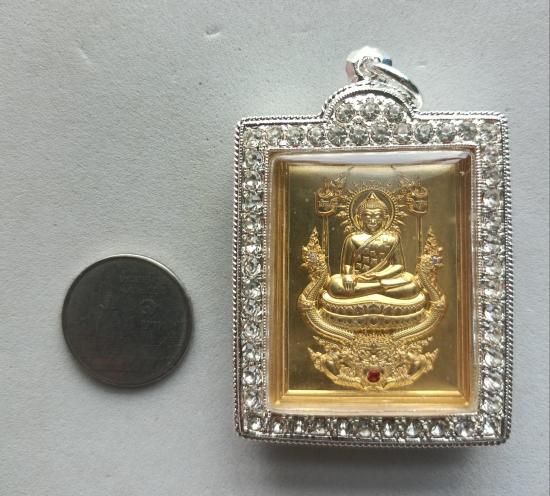 วัดใจเคาะเดียวแดงจ้า เหรียญสี่เหลี่ยมหลวงพ่อสำเร็จศักดิ์สิทธิ์ เนื้อนวะชุบน้ำทองค ำ ฝังเพชร พร้อมกรอบชุบเงินฝังเพชร ไม่มีสร้อยนะครับ เคาะเดียวแดงจ้า