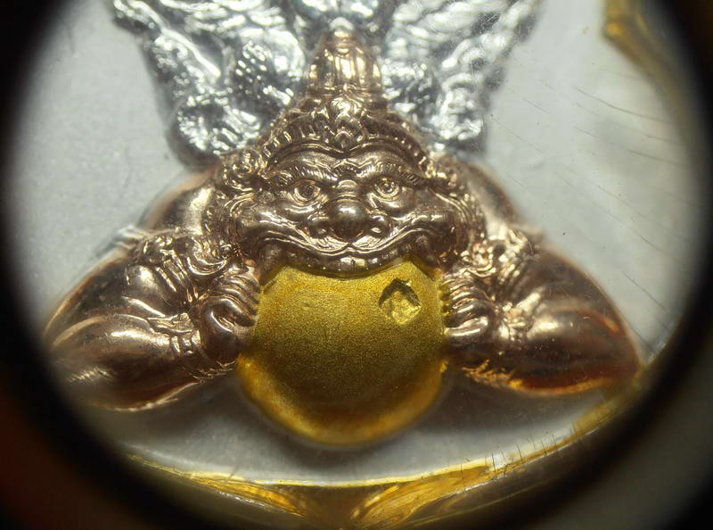 พระนารายณ์ทรงครุฑประทับราหู มีพุทธานุภาพ ธัมมานุภาพ สังฆานุภาพ เสริมดวงชะตาบารมี เพิ่มพูน ทรัพย์สินเงินทอง ความสุขความสบาย มังมีศรีสุข ลาภผลพูนทวี ร่ำรวยเป็นมหาเศรษฐีตลอดกาล พร้อมทั้งขจัดปัดเป่าสิ่งที่เป็นอัปมงคล ป้องกันเสนียดจัญไร ป้องกันภูตผีปีศาจ แคล้วคลาดปลอดภัย จากภัยพิบัตินานัปการ
