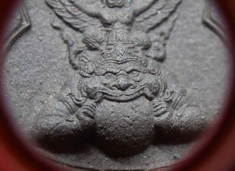 พระนารายณ์ทรงครุฑประทับราหู มีพุทธานุภาพ ธัมมานุภาพ สังฆานุภาพ เสริมดวงชะตาบารมี เพิ่มพูน ทรัพย์สินเงินทอง ความสุขความสบาย มังมีศรีสุข ลาภผลพูนทวี ร่ำรวยเป็นมหาเศรษฐีตลอดกาล พร้อมทั้งขจัดปัดเป่าสิ่งที่เป็นอัปมงคล ป้องกันเสนียดจัญไร ป้องกันภูตผีปีศาจ แคล้วคลาดปลอดภัย จากภัยพิบัตินานัปการ