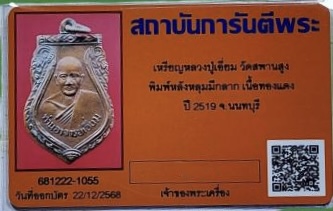 หลวงปู่เอี่ยม วัดสะพานสูง พ.ศ.2519 .... พร้อมบัตรการันตีรับรอง