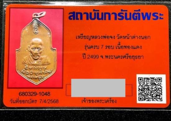 เหรียญหลวงพ่อจง วัดหน้าต่างนอก รุ่นครบ7รอบ ปี2499 อยุธยา หายาก