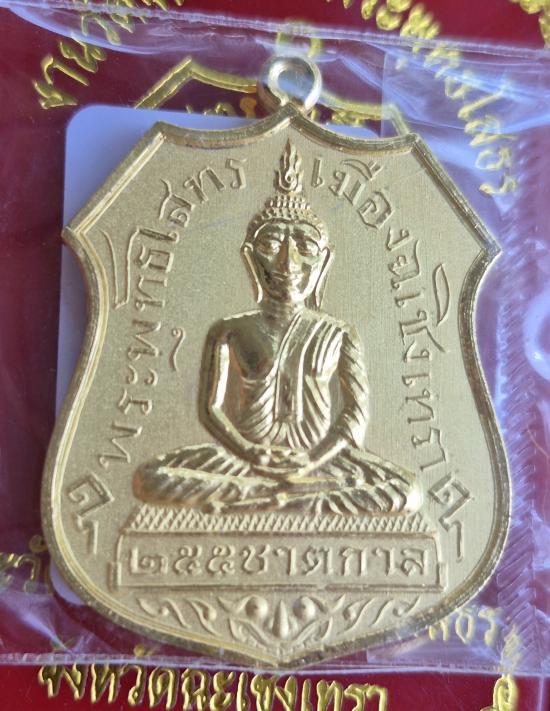 วัดใจ เหรียญแกะสด หลวงพ่อโสธร (วัดจัดสร้าง) เนื้อบรอนซ์ชุบทองคำพ่นทรายกรีดเงาบางส่วน