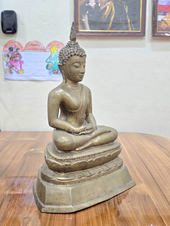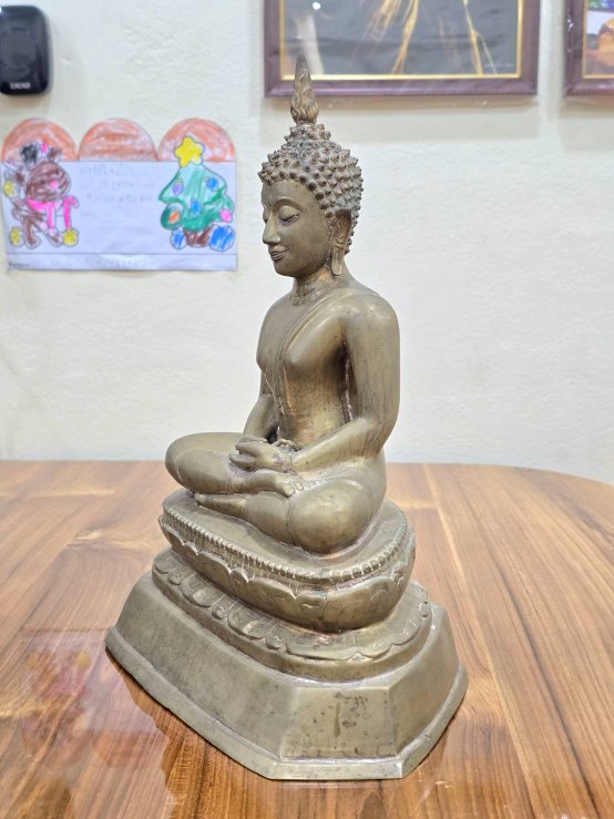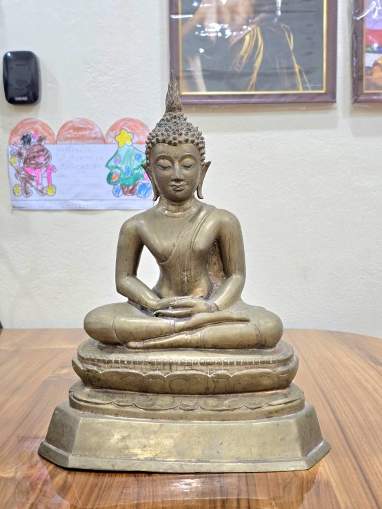 พระบูชาสมัยรัชกาล ปางสมาธิ เนื้อทองแหลือง ก้นดินไทยเดิมๆ ความกว้าง 9 นิ้วครึ่ง ความสูง 14นิ้ว สภาพสวยเดิม....ครับ