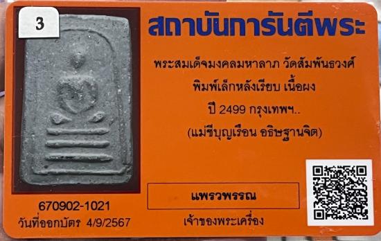 พระมงคลมหาลาภพระสมเด็จพิมพ์เล็กเนื้อผงพรหมโสฬรปี2499.คุณแม่บุญเรือน