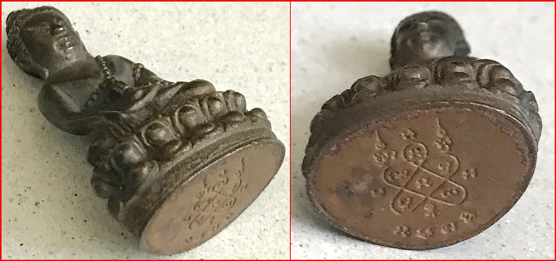 ใต้ฐานปิดด้วยแผ่นยันต์จินดามณี ยันต์ประจำตัวของหลวงปู่ทิม วัดละหารไร่ องค์นี้