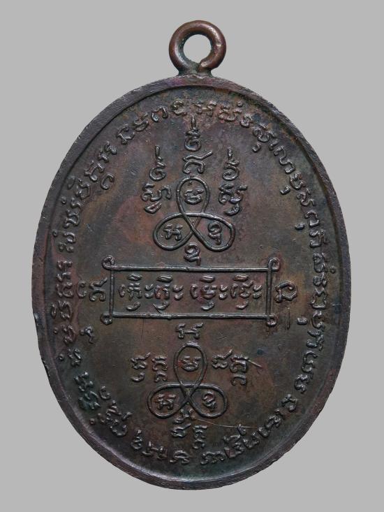 ยันต์ด้านหลังเหรียญประกอบด้วยยันต์สำคัญหลายตัว โดยเฉพาะ "ยันต์สี่เกลอ" ซึ่งเป็นยันต์ตัวครูที่หลวงพ่อสงวนไว้สำหรับบนเหรียญเท่านั้น ไม่สักบนตัวลูกศิษย์