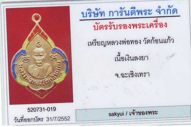 หลวงพ่อทอง วัดก้อนแก้ว ปี2499 รุ่นแรก เนื้อเงินลงยา ปี2493 สวย เลี่ยมทอง พร้อมใบการันตี