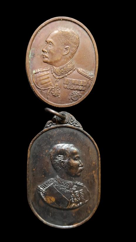 **100.**(2เหรียญ) เหรียญรัชกาลที่ 5 วัดมกุฏกษัตริยารามราชวรวิหาร + เหรียญรัชกาลที่ 5 ครบรอบโรงเรียนนายร้อย จปร.90 ปี พ.ศ.2520