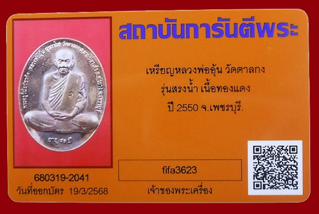 แดงที่เคาะแรก !!! เหรียญรุ่นสรงน้ำ พิมพ์ใหญ่ หลวงพ่ออุ้น วัดตาลกง ปี2550 + บัตรพระแท้