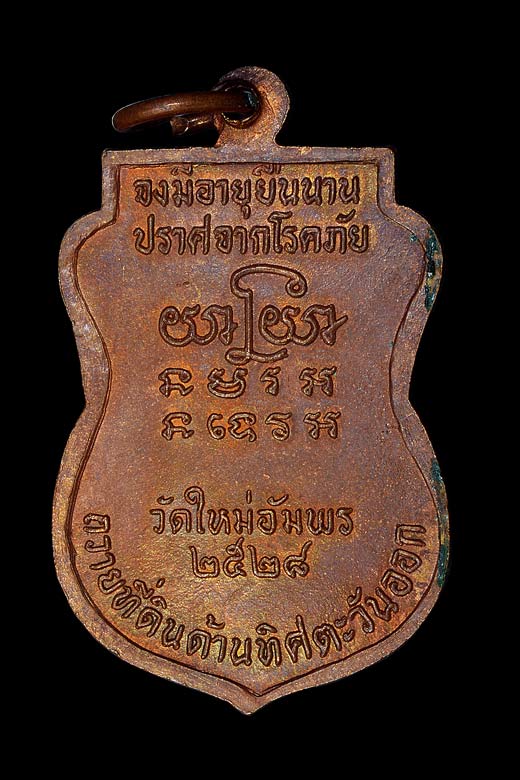 เหรียญเสมานั่งเก้าอี้ จึงมีอายุยืนนาน ปราศจากโรคภัย ถวายที่ดินด้านทิศตะวันออก วัดใหม่อัมพร ( เนื้อทองแดง ) พ.ศ.2528 ** 3 **
