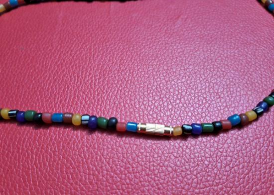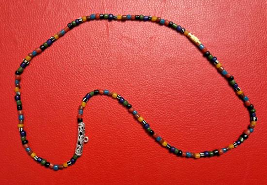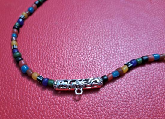 สร้อยคอลูกปัดทราวดี ลูกปัดโบราณสวยๆ ความยาว 24 นิ้ว สวมหัวได้หรือหมุนเกลียวทองเหลืองถอดออกก็ได้ สามารถห้อยพระได้ 1 องค์ (กท.22) |