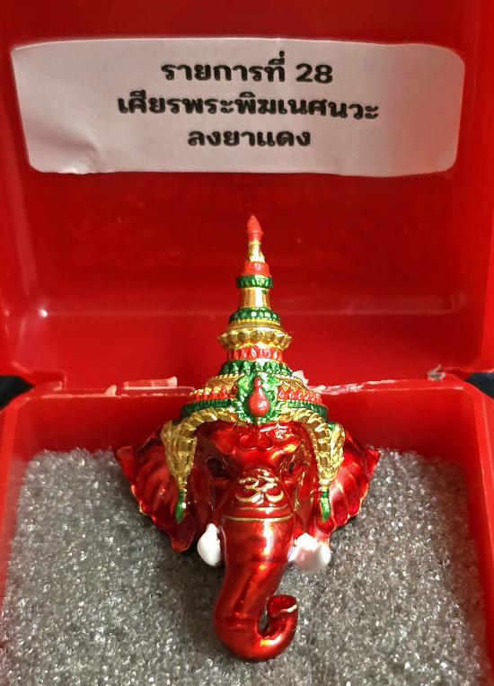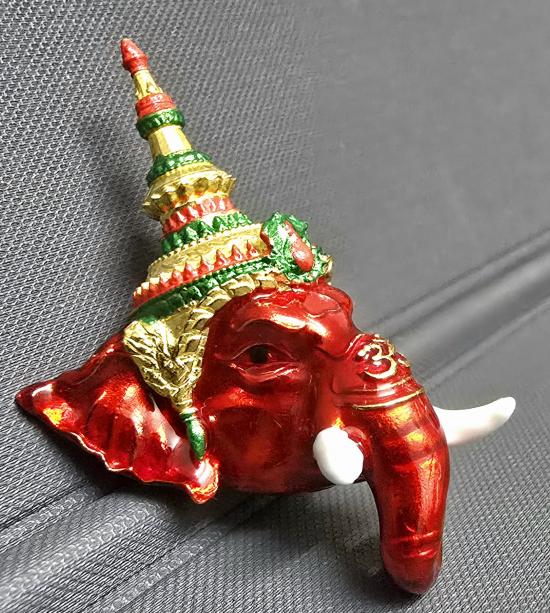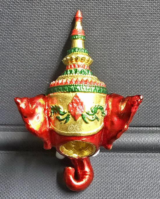 เศียรหล่อ นวะโลหะ ลงยาแดง เพ้นเครื่องทรงชฏา พระพิฆเนศ "โอมศรีคเณ" วัดท้ายน้ำ จ.พิจิตร สวยมากครับ