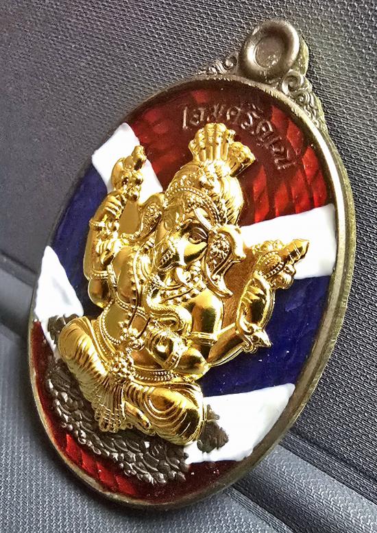 "พิเศษ" สร้าง 9 องค์ หมายเลข ๕๕๕..พระพิฆเนศ "โอมศรีคเณ" วัดท้ายน้ำ จ.พิจิตร เนื้อมหาชนวน ลงยาลายธงชาติแนวเฉียง(ลายอุลตร้าแมน) หน้ากากชุบทอง ใส่ตลับชุบทองฝังเพชร