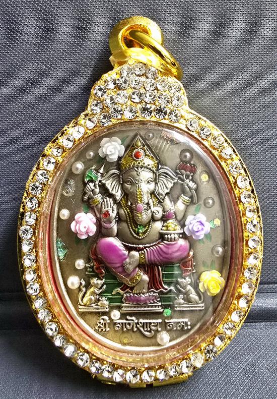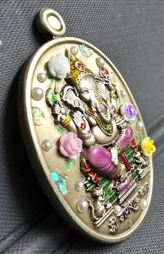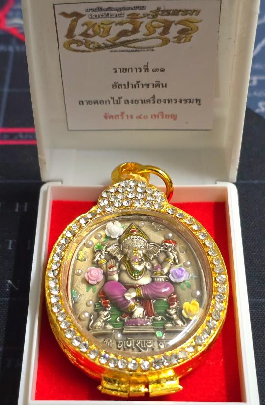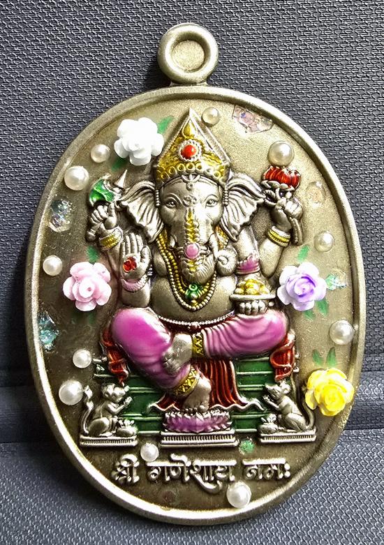 พระพิฆเนศ รุ่น"ไหว้ครู" เทวสถานอุทยานพระพิฆเนศ จ.นครสวรรค์ อัลปาก้าซาติน ลายดอกไม้(3มิติ) ลงยาเครื่องทรงชมพู ใส่ตลับชุบทองฝังเพชรพร้อมใช้ครับ หมายเลข ๔....พระสวยมาก พร้อมกล่อง จัดสร้างเพียง 40 องค์เ