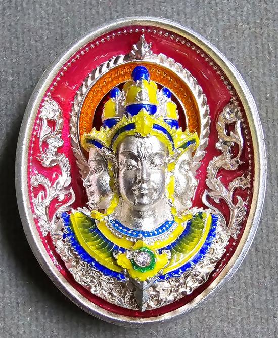 เนื้อชุบเงิน ลงยาชมพู องค์ชุบเงินลงยา ฝังพลอยชมพู พระสวยมากๆครับ