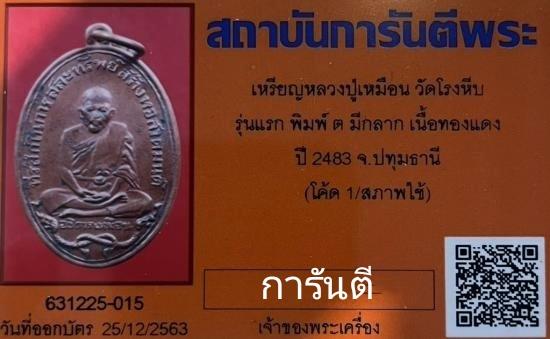 เหรียญหลวงปู่เหมือน วัดโรงหีบ รุ่นแรก ปี 2483 (สายเหนียวปทุมธานีธานี)