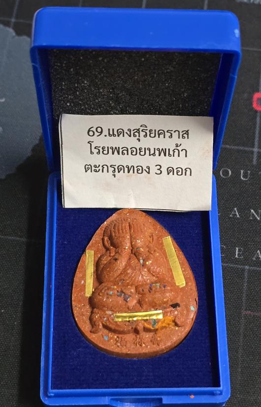 เนื้อแดงสุริยคราส โรยพลอยนพเก้า ตระกรุดทองทิพย์ 3 ดอก
