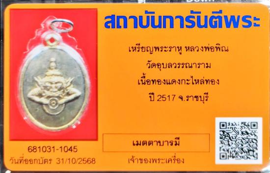 เหรียญราหู หลวงพ่อพิณ วัดอุบล ปี 2517