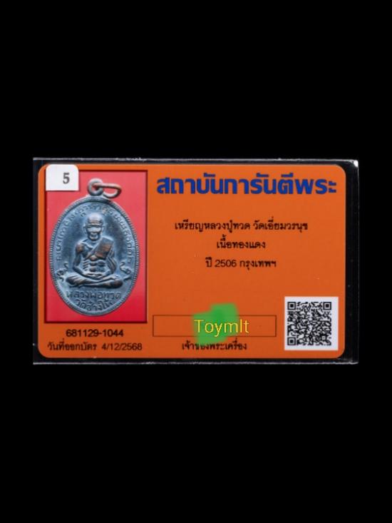 เหรียญหลวงพ่อทวด ปี06 ออกวัดเอี่ยมวรนุช กรุงเทพ อ.ทิมวัดช้างไห้ปลุกเสกพร้อมบัตร