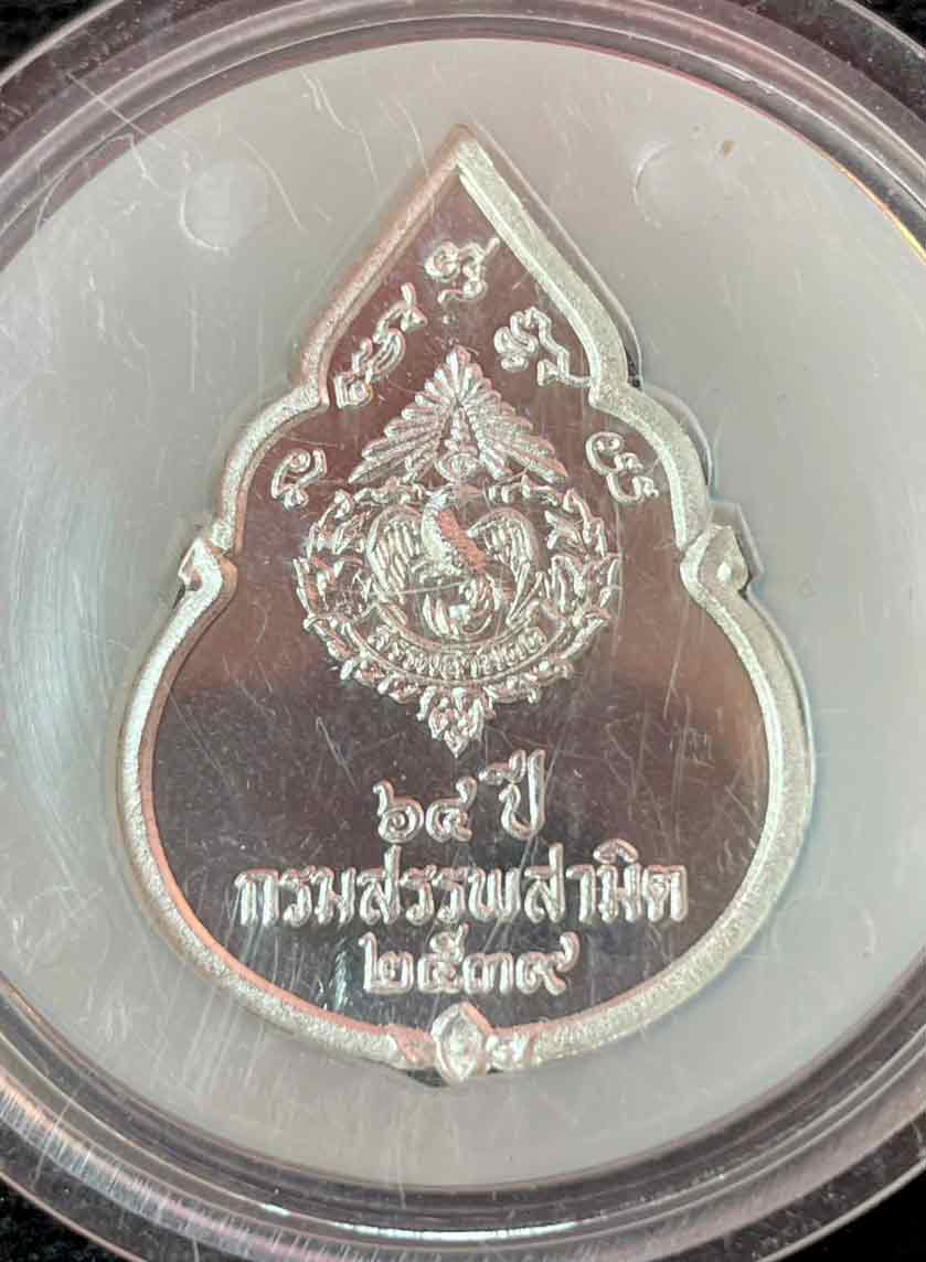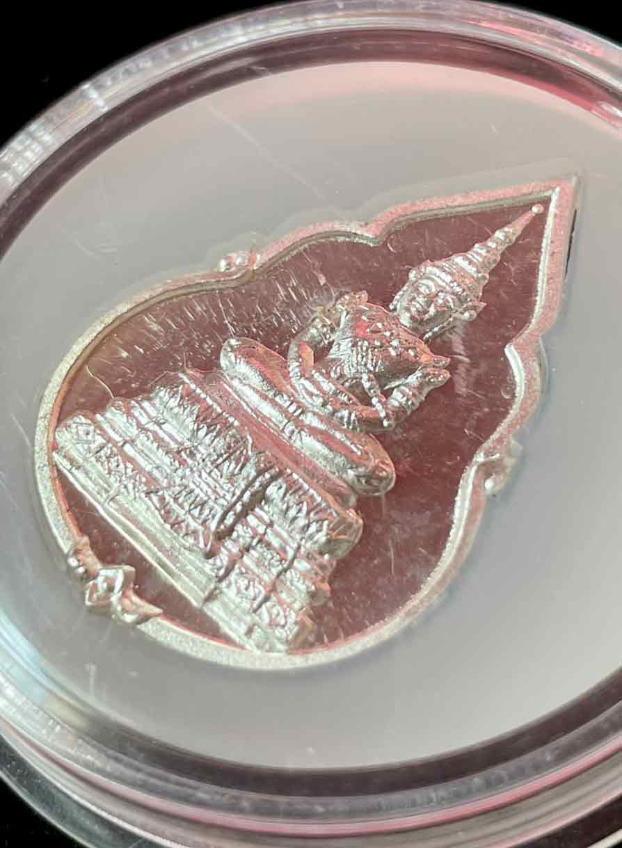 เหรียญพระแก้วมรกต เนื่องในโอกาสครบรอบ 64 ปี กรมสรรพสามิต ปี 2539 เนื้อเงินขัดเงาบริสุทธิ์ 99.99% กล่องเดิม
