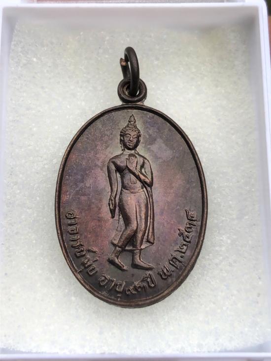 เหรียญพระลีลา พ่อท่านมุ่ย วัดป่าระกำเหนือ อ.ปากพนัง จ.นครศรีธรรมราช ปี 2534 เนื้อทองแดง