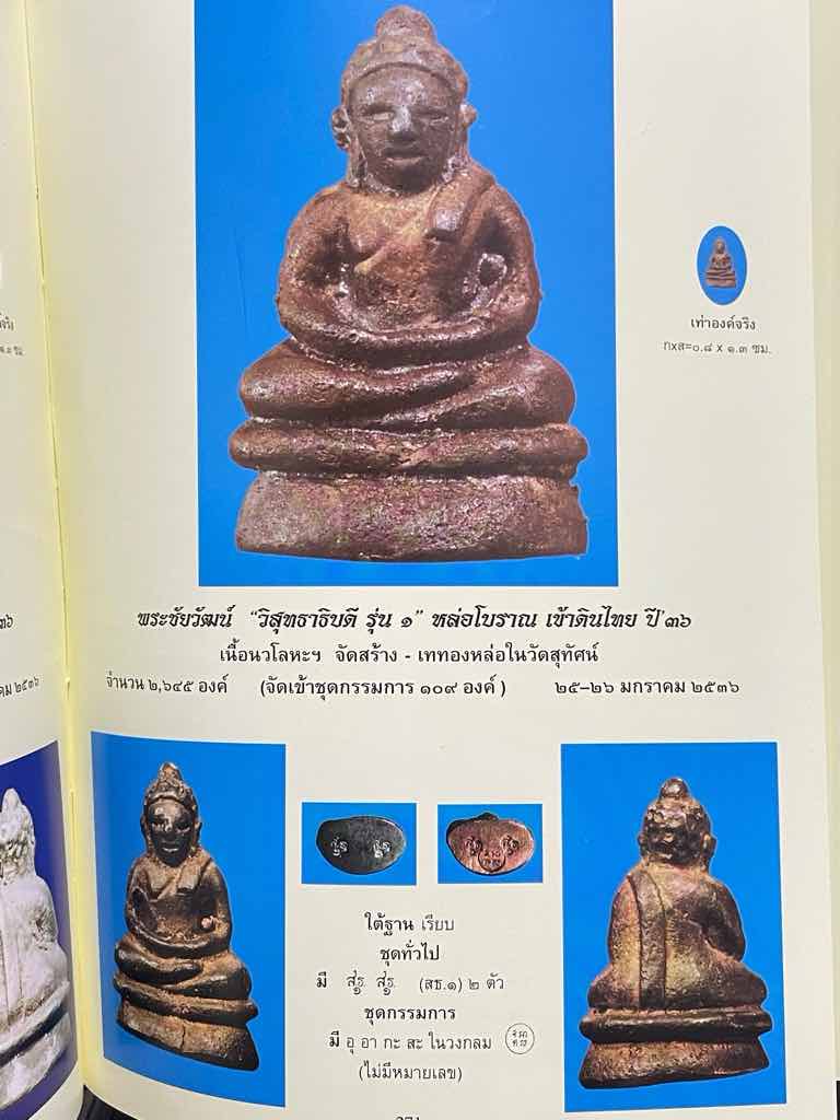 500.- ems พระชัยวัฒน์ "วิสุทธาธิบดี รุ่น๑" หล่อโบราณ เข้าดินไทย ปี 2536 เนื้อนวโลหะเต็มสูตร สธ.๑ (ตอก 2 โค๊ด) จัดสร้าง - เททองหล่อในวัดสุทัศน์ เนื้อสวยกลับดำ คราบเบ้าตามซอก สวยเดิมคากล่อง