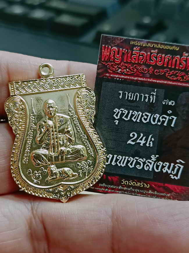 วัดใจ 100 เหรียญเสมาพญาเสือนอนกิน พญาเสือเรียกทรัพย์ หลวงพ่อประสูติปิยธัมโม วัดถ้ำพระพุทธโกษีย์(วัดในเตา) จ.ตรัง 2568 ชุบทองคำ 24K ฝังเพชร หมายเลข 2 กล่องเดิม