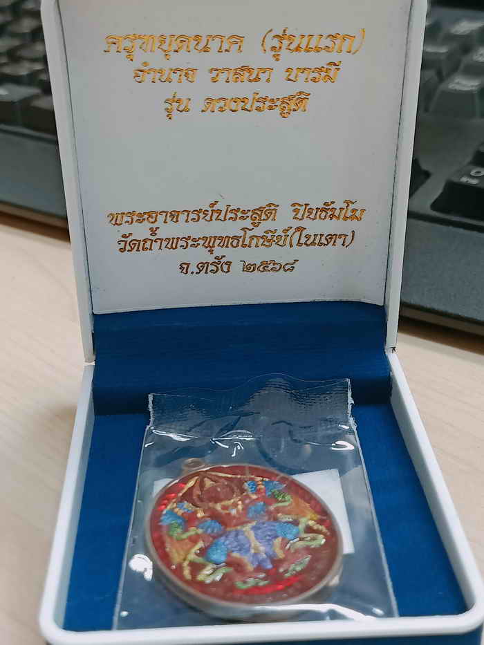 วัดใจ 100 เหรียญครุฑหยุดนาค รุ่นแรก ดวงประสูติ หลวงพ่อประสูติปิยธัมโม วัดถ้ำพระพุทธโกษีย์(วัดในเตา) จ.ตรัง 2568 นวะผิวโหด เพ้นท์ ลงยา หมายเลข 21 สร้าง 29 กล่องเดิม