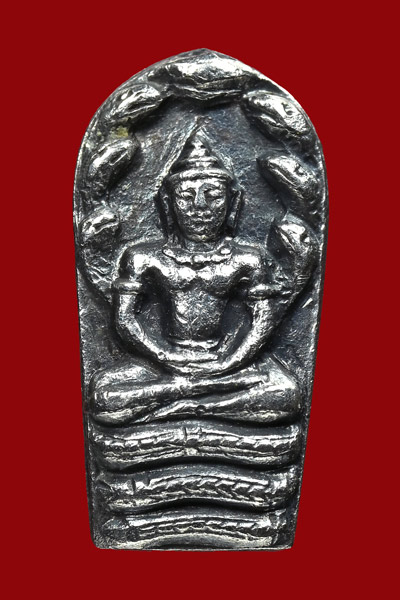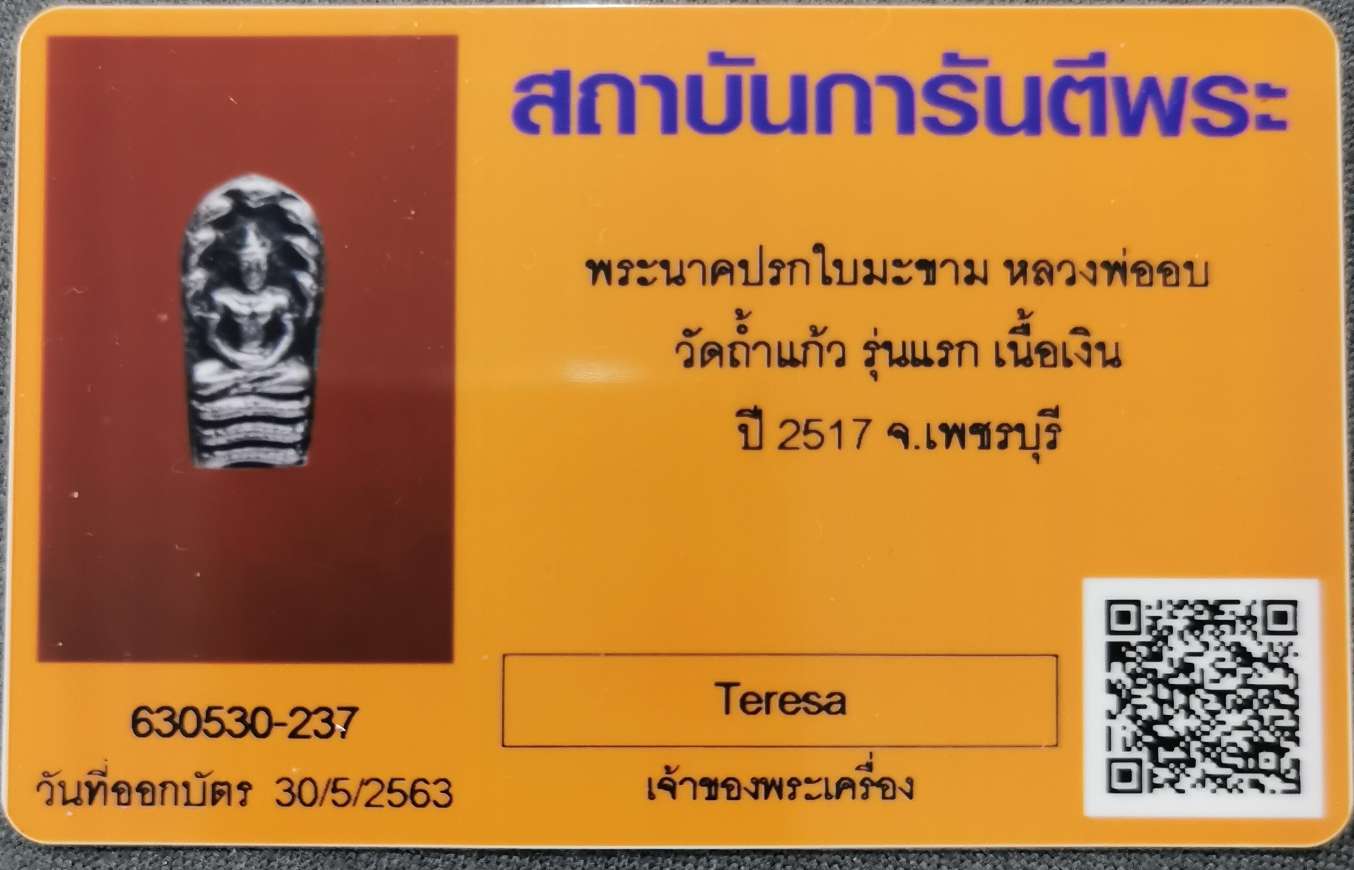 ปรกใบมะขาม รุ่นแรก เนื้อเงิน หลวงพ่ออบ วัดถ้ำแก้ว เพชรบุรี ปี2517 พร้อมบัตรรับรอง