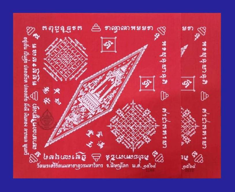 ( 2 ผืน สีแดง ) ผ้ายันต์ พญาเต่ามังกร เวสสุวรรณ - พญาเต่าเรือน พระสังกัจจายน์มหาลาภ ขนาด 30CM x 30 CM ปี 2564 วัดพระศรีรัตนมหาธาตุวรมหาวิหาร จัดสร้างเอง |