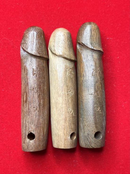 ปลัดขิกไม้พยุงแกะอุดกริ่ง ค้าขายร่ำรวยครับ มีจารรอบอัน รุ่นไตรมาศ44 หลวงพ่อเปิ่น วัดบางพระ พ.ศ.2544 |