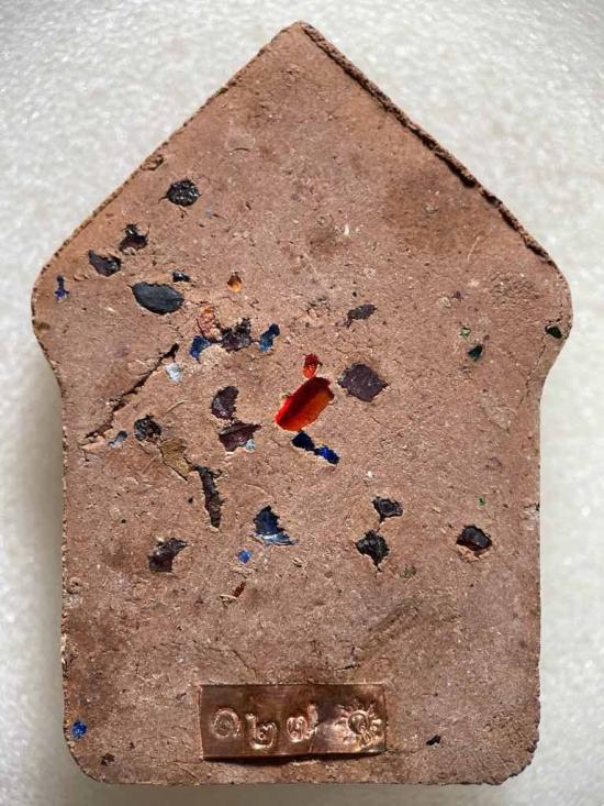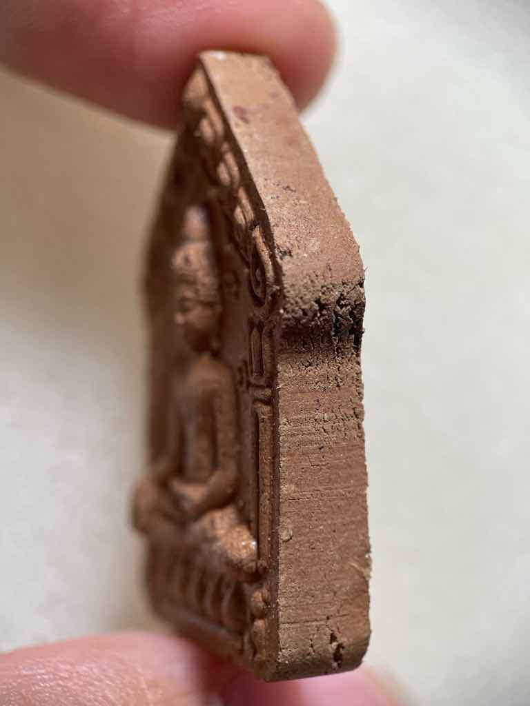 จ.อ่างทอง เนื้อน้ำตาล (ผงไม้อาถรรพ์ ,ผงไม้ตะเคียน ผงไม้ผูกคอผสมผงนางพรายและพรายกุมารเสริมมวลสารพรายสีรุ้ง) หลังเรียบโรยพลอย no.127
