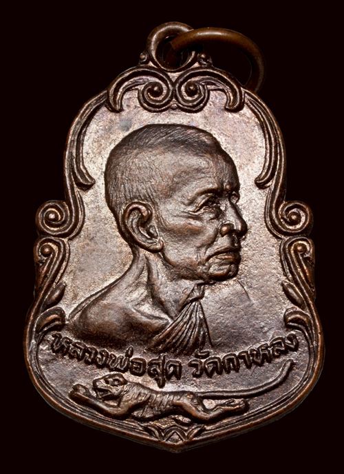 เหรียญหลวงพ่อสุด วัดกาหลง พิมพ์น้ำเต้า " บล็อคนิยมรางคู่ จมูกติ่ง " เนื้อทองแดง ปี 2525 จ.สมุทรสาคร สวยๆครับ
