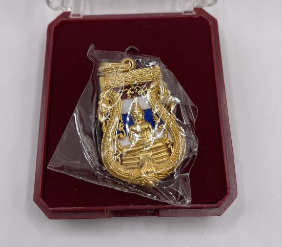 เคาะเดียวแดง หลวงพ่อโธรส รุ่น มหามงคลย้อนยุค เลข 1797 เนื้อชุบทองลงยาธงชาติ
