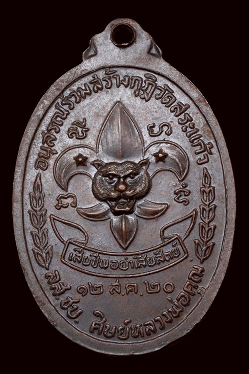 เหรียญลูกเสือชาวบ้าน หลวงพ่อคูณ วัดบ้านไร่ ตอกโค้ด เนื้อทองแดง ปี 2520 จ.นครราชสีมา ครับ