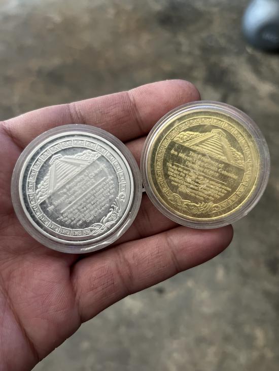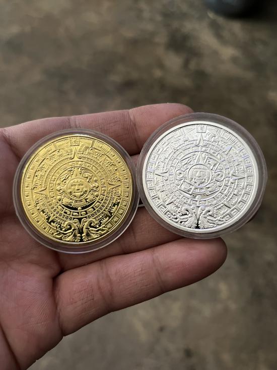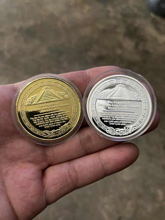 เหรียญที่ระลึกมายา ปิรามิด ปฎิทิน มายัน 2เหรียญ ชุบขัดเงา สวยๆตลับเดิม