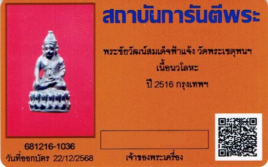 พระชัยวัฒน์สมเด็จฟ้าแจ้ง เนื้อนวะ วัดโพธิ ท่าเตียน ปี2516 +บัตรรับรองการันตีพระ