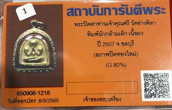 พระปิดตาท่านเจ้าคุณศรี วัดอ่างศิลา พิมพ์นักกล้ามเล็ก เนื้อผง ปี 2507 ชลบุรีเลี่ยมทองพร้อมบัตร สวยเดิมๆ