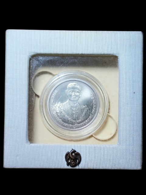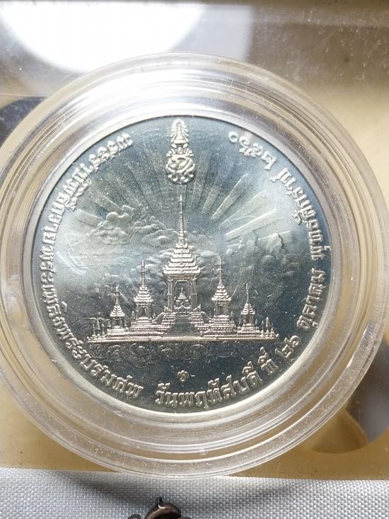 เหรียญที่ระลึกพระราชพิธีถวายพระเพลิงพระบรมศพ พระเจ้าอยู่หัวรัชกาลที่ 9 เนื้อเงิน สภาพสวยพร้อมกล่อง