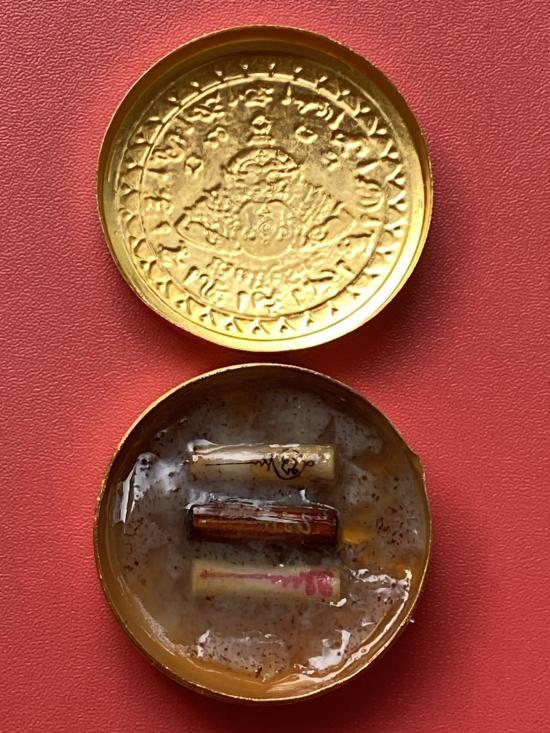 เนื้อ โลหะชุบทองลงยาสีดำขอบสีแดง ขนาด 5ซม |