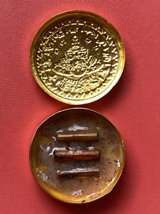 เนื้อ โลหะชุบทองลงยาสีดำขอบสีแดง ขนาด 5ซม |