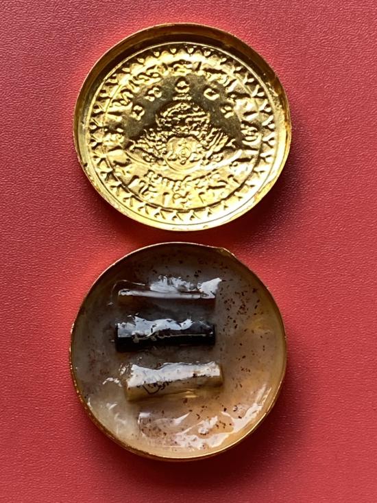 เนื้อ โลหะชุบทองลงยาสีดำขอบสีแดง ขนาด 5ซม |