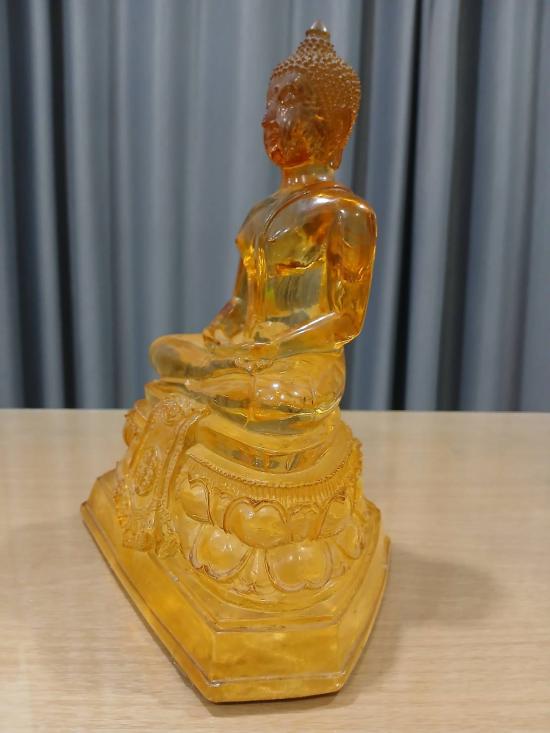 พระบูชา พระแก้วหลวงพ่อสด วัดปากน้ำ ภาษีเจริญ รุ่นที่ระลึก ปี2525 หน้าตัก 5 นิ้ว เนื้อเรซิ่นแก้ว สีเหลืองอำพันน้่ำผึ้ง จัดสร้างที่ระลึกหลวงพ่อสด วัดปากน้ำ พิธีปฏิบัติธรรมที่เน้นเดินสายกลาง