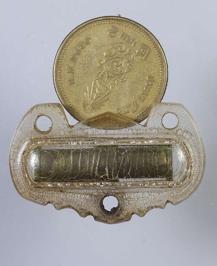 วัดใจ**เครื่องราง ตะกรุดลูกปืน เลี่ยมเก่า ไม่ทราบที่.....ตามสภาพครับ |