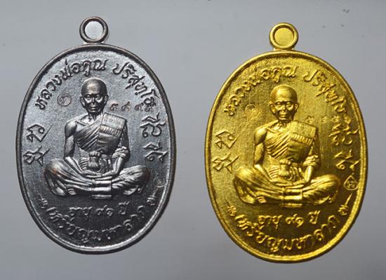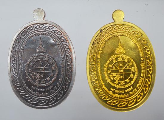 เหรียญหลวงพ่อคูณ วัดบ้านไร่ รุ่น มหาลาภ เททอง วาระ 3 ครั้งสุดท้าย ปี 57 เนื้อทองระฆัง เลข 5456 และทองแดงรมดำ เลข 5945 |