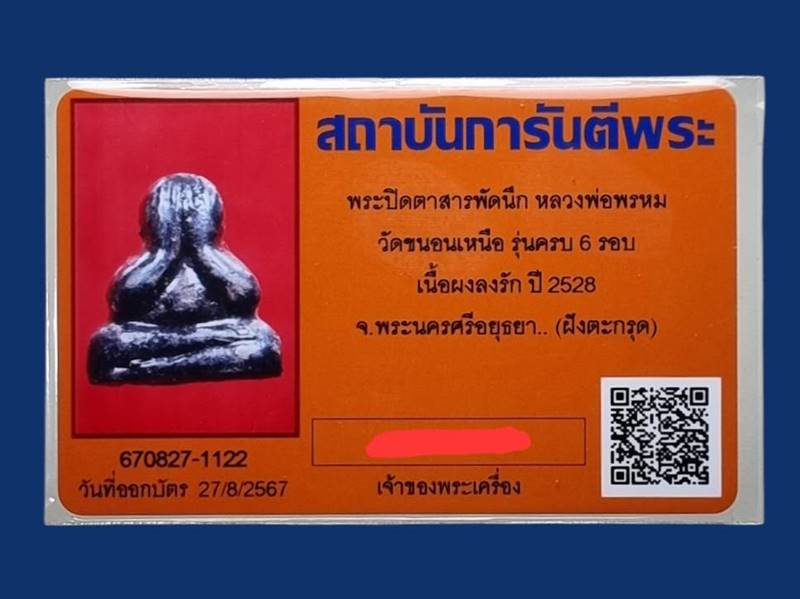 พระปิดตา สารพัดนึก 6 รอบ ฝังตะกรุด ปี 2528 หลวงพ่อพรห์ม วัดขนอนเหนือ จ.อยุธยา เนื้อผงจุ่มรัก สุดคลาสสิค สภาพสวย พร้อมบัตรรับรอง